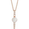 14K Rose Cultured White Freshwater Pearl & 1/6 CTW Natural Diamond 16-18" Necklace