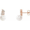 14K Rose Cultured White Freshwater Pearl & 3/8 CTW Natural Diamond Earrings