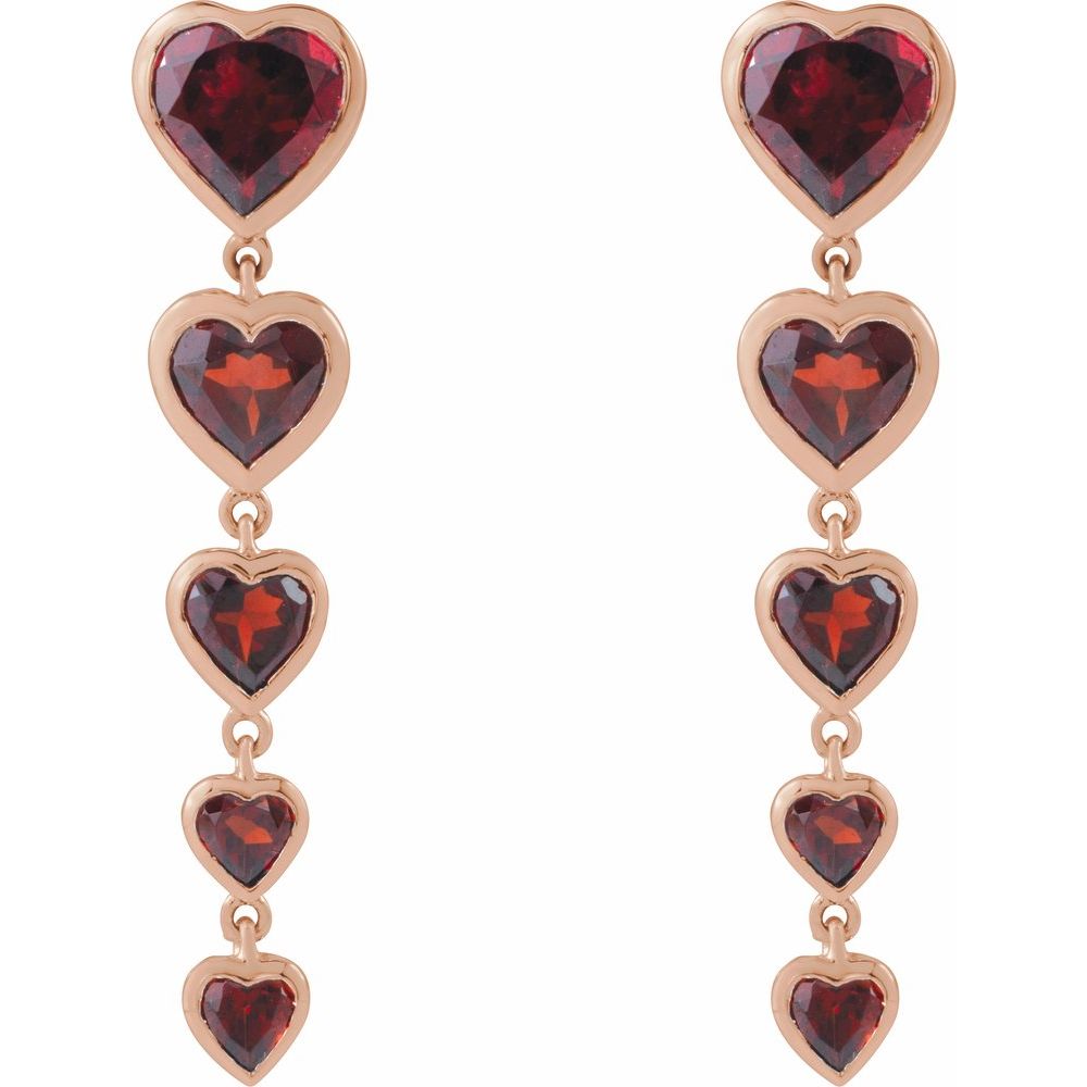 14K Rose Natural Mozambique Garnet Heart Earrings