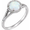 14K White Created Opal & 1/6 CTW Natural Diamond Ring
