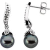 14K White Cultured Black Akoya Pearl & 1/10 CTW Natural Diamond Earrings