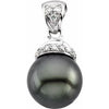 14K White Cultured Black Freshwater Pearl & .07 CTW Natural Diamond Pendant