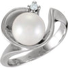 14K White Cultured White Akoya Pearl & .03 CTW Natural Diamond Ring