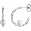 14K White Cultured White Freshwater Pearl & .025 CTW Natural Diamond Hoop Earrings