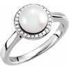 14K White Cultured White Freshwater Pearl & .06 CTW Natural Diamond Halo-Style Ring