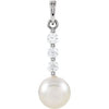 14K White Cultured White Freshwater Pearl & 1/4 CTW Natural Diamond Pendant
