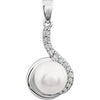 14K White Cultured White Freshwater Pearl & 1/8 CTW Natural Diamond Pendant