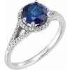 14K White Lab-Grown Blue Sapphire & 1/6 CTW Natural Diamond Ring