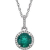 14K White Lab-Grown Emerald & 1/10 CTW Natural Diamond 18" Necklace
