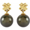 14K Yellow Cultured Gray Tahitian Pearl Earrings