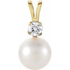 14K Yellow Cultured White Akoya Pearl & .025 CTW Natural Diamond Pendant