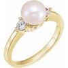 14K Yellow Cultured White Akoya Pearl & 1/6 CTW Natural Diamond Ring