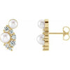 14K Yellow Cultured White Akoya Pearls & 1/2 CTW Natural Diamond Earrings