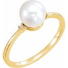 14K Yellow Cultured White Freshwater Pearl & .025 CTW Natural Diamond Ring