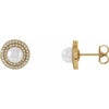 14K Yellow Cultured White Freshwater Pearl & 1/5 CTW Natural Diamond Earrings