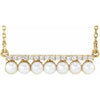 14K Yellow Cultured White Freshwater Pearl & 1/8 CTW Natural Diamond Bar 16-18" Necklace