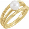 14K Yellow Cultured White Freshwater Pearl Negative Space Ring