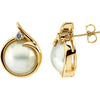 14K Yellow Cultured White Mabe Pearl & 1/8 CTW Natural Diamond Earrings