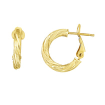 14K Gold 3x10mm Diamond Cut Twist Omega Back Hoop Earring