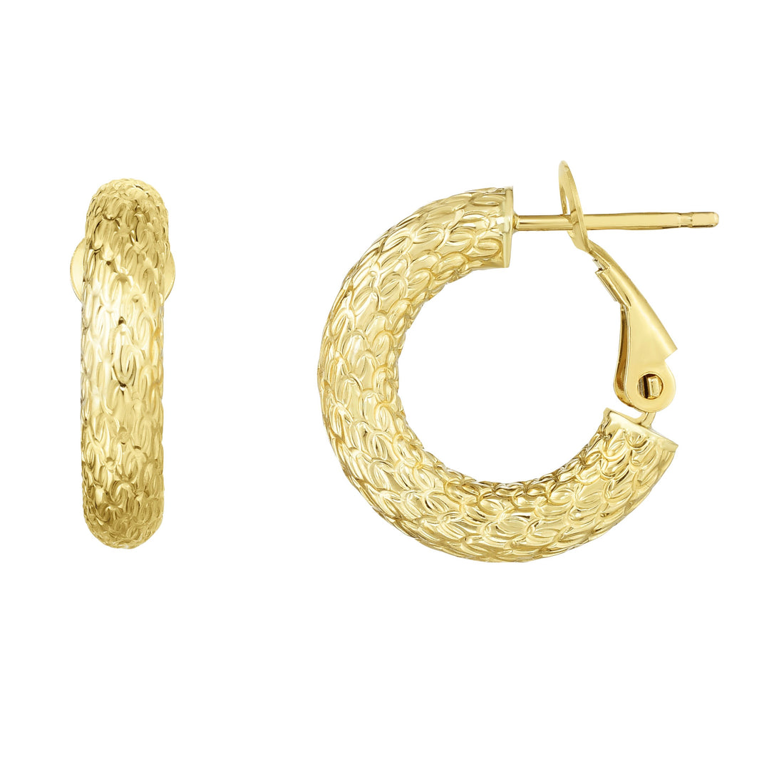 14K Gold 4x10mm Textured Omega Back Hoop Earring