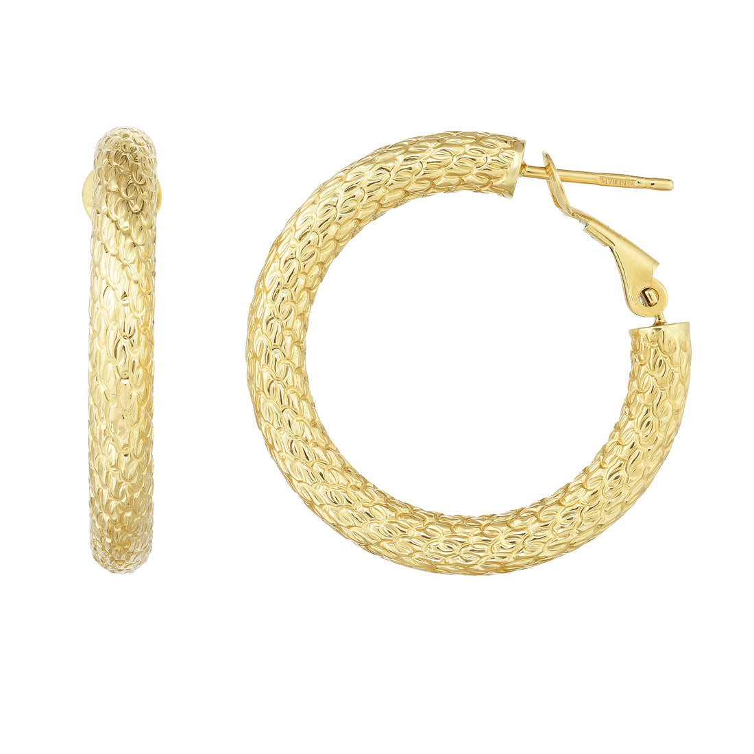 14K Gold 4x20mm Textured Omega Back Hoop Earring