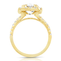 Does your relationship have Chemistry? Celebrate it with the brilliance of a lab-grown diamond Halo Engagement Ring. The center Round Shape is surrounded and complemented by shimmering pave set stones. A perfect symbol of your love!