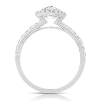 Does your relationship have Chemistry? Celebrate it with the brilliance of a lab-grown diamond Halo Engagement Ring. The center Pear Shape is surrounded and complemented by shimmering pave set stones. A perfect symbol of your love!