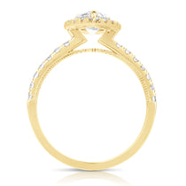 Does your relationship have Chemistry? Celebrate it with the brilliance of a lab-grown diamond Halo Engagement Ring. The center Pear Shape is surrounded and complemented by shimmering pave set stones. A perfect symbol of your love!