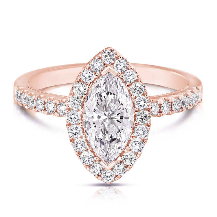 1 Ct Marquise Center Diamond Halo Engagement Ring