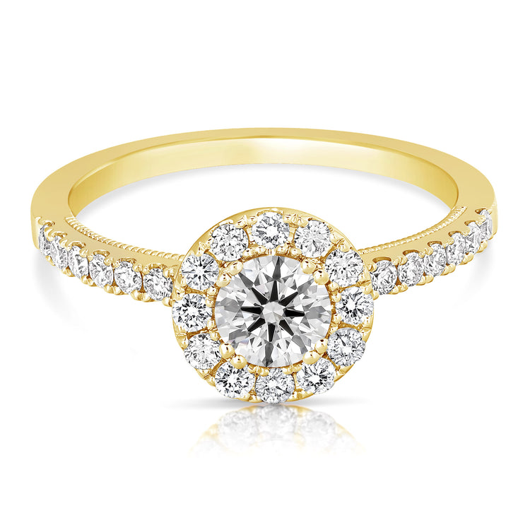 1/2 Ct Round Center Diamond Halo Engagement Ring