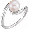 Platinum 7.5-8.0 mm Cultured White Freshwater Pearl Ring