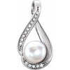 Platinum Cultured White Freshwater Pearl & .03 CTW Natural Diamond Pendant