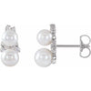 Platinum Cultured White Freshwater Pearl & 1/10 CTW Natural Diamond Ear Climbers