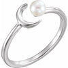 Platinum Cultured White Freshwater Pearl Crescent Moon Ring