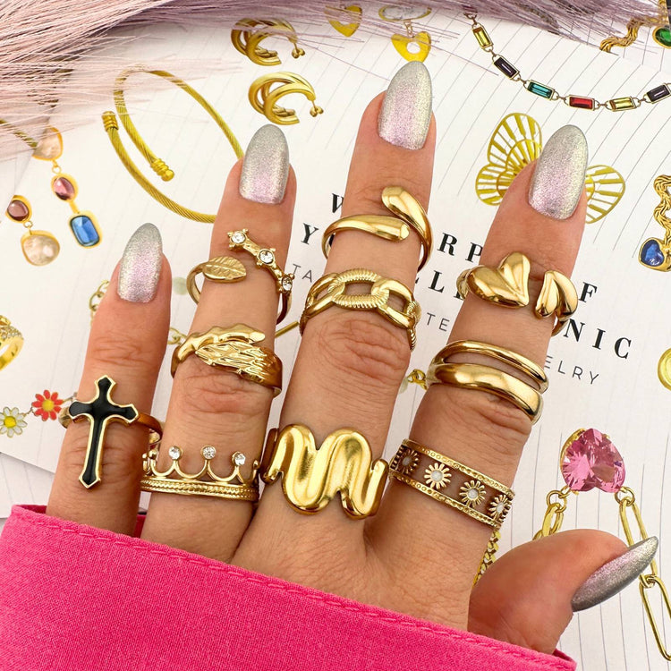 18K gold plated Stainless steel Leaf finger ring, Intensity