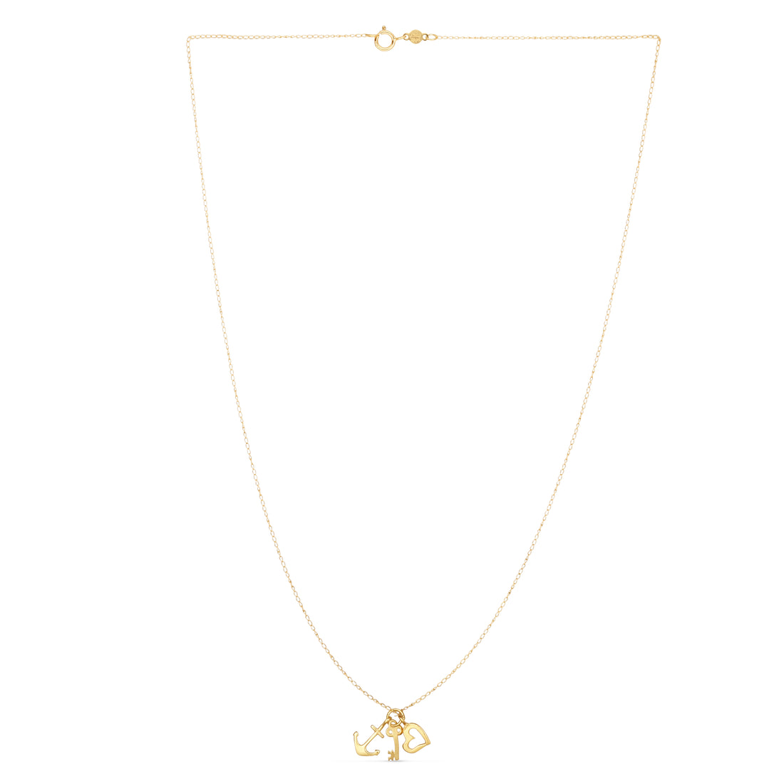 14K Gold Heart, Anchor, and Key Charm Necklace