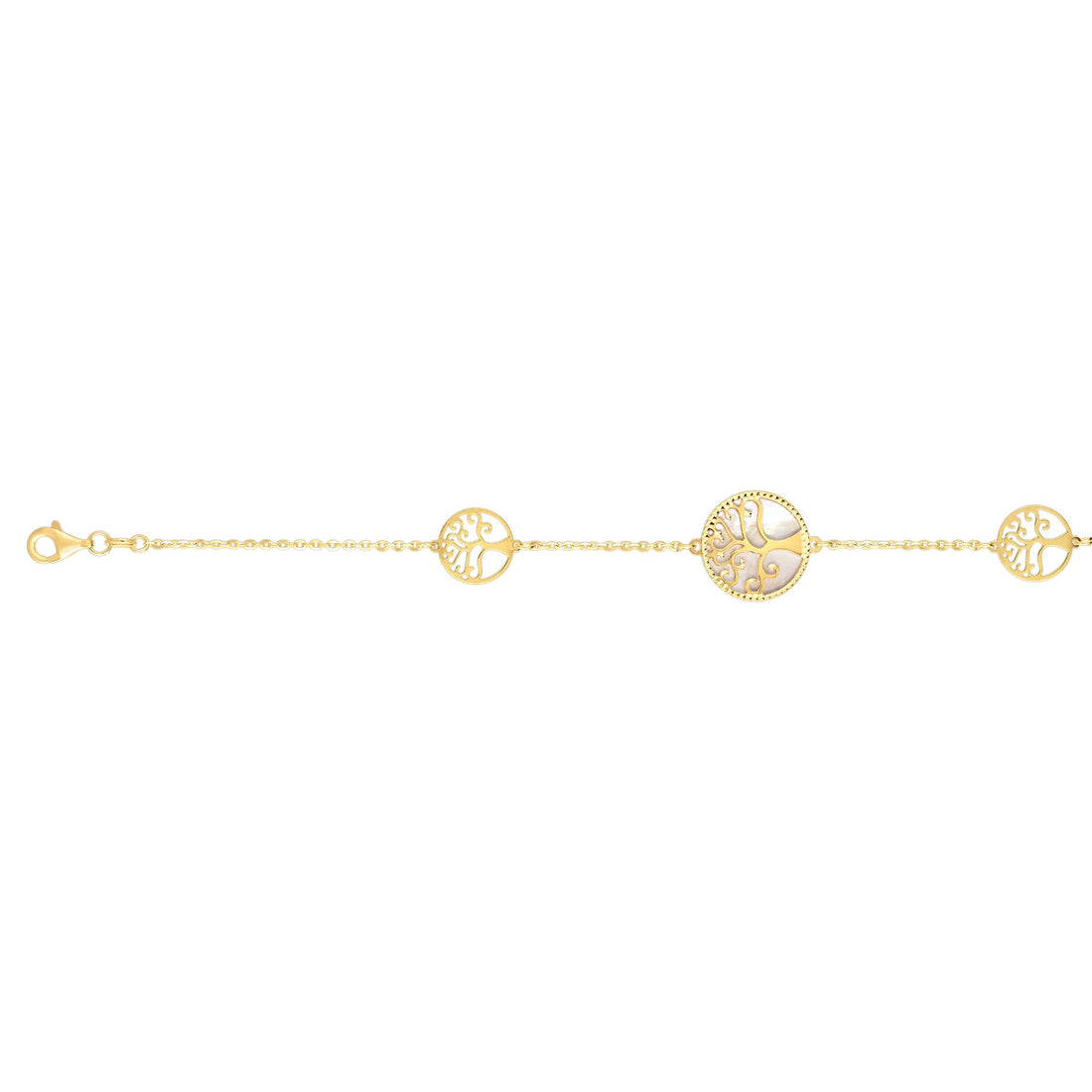 14K Gold Mother of Pearl Tree of Life Bracelet