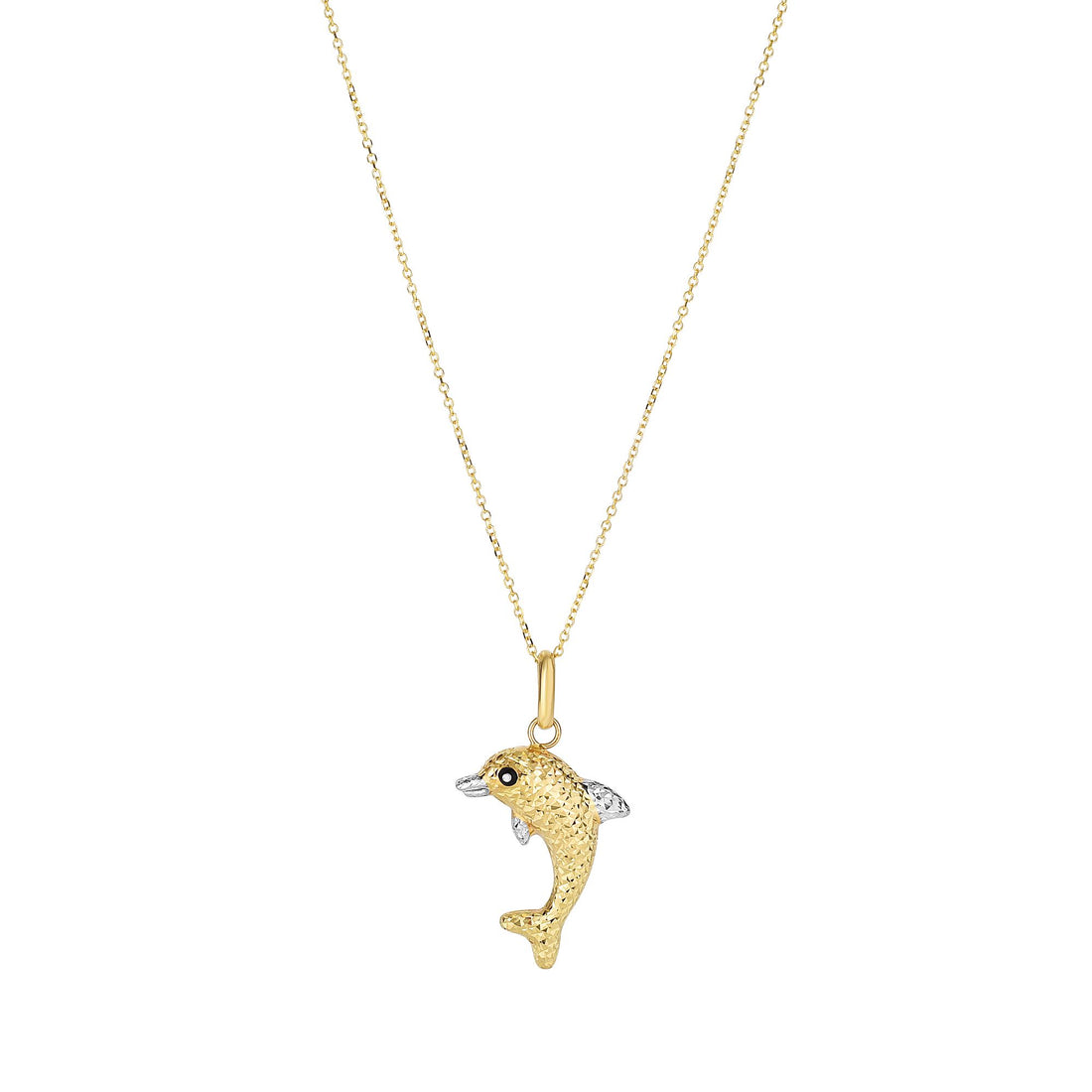14K Gold Diamond Cut Dolphin Necklace