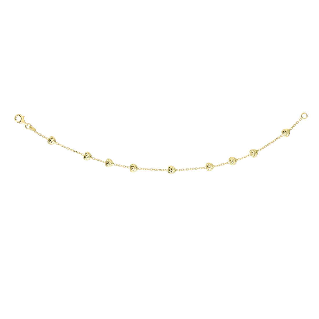 14K Gold Diamond Cut Bead Heart Station Bracelet
