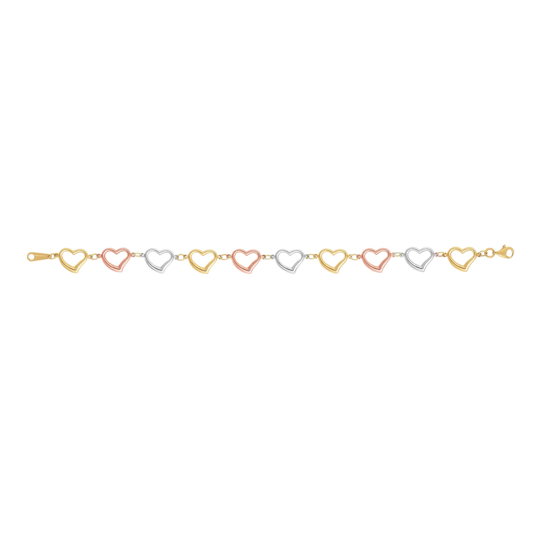 14K Tri-color Gold Heart Link Bracelet