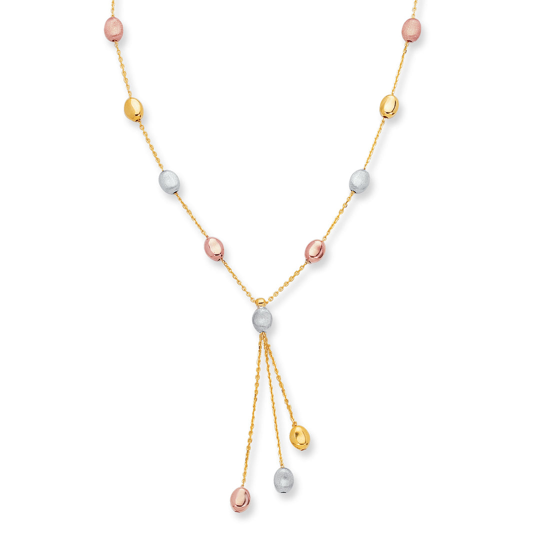 14K Tri-color Gold Polished & Satin Alternating Pebble Anklet